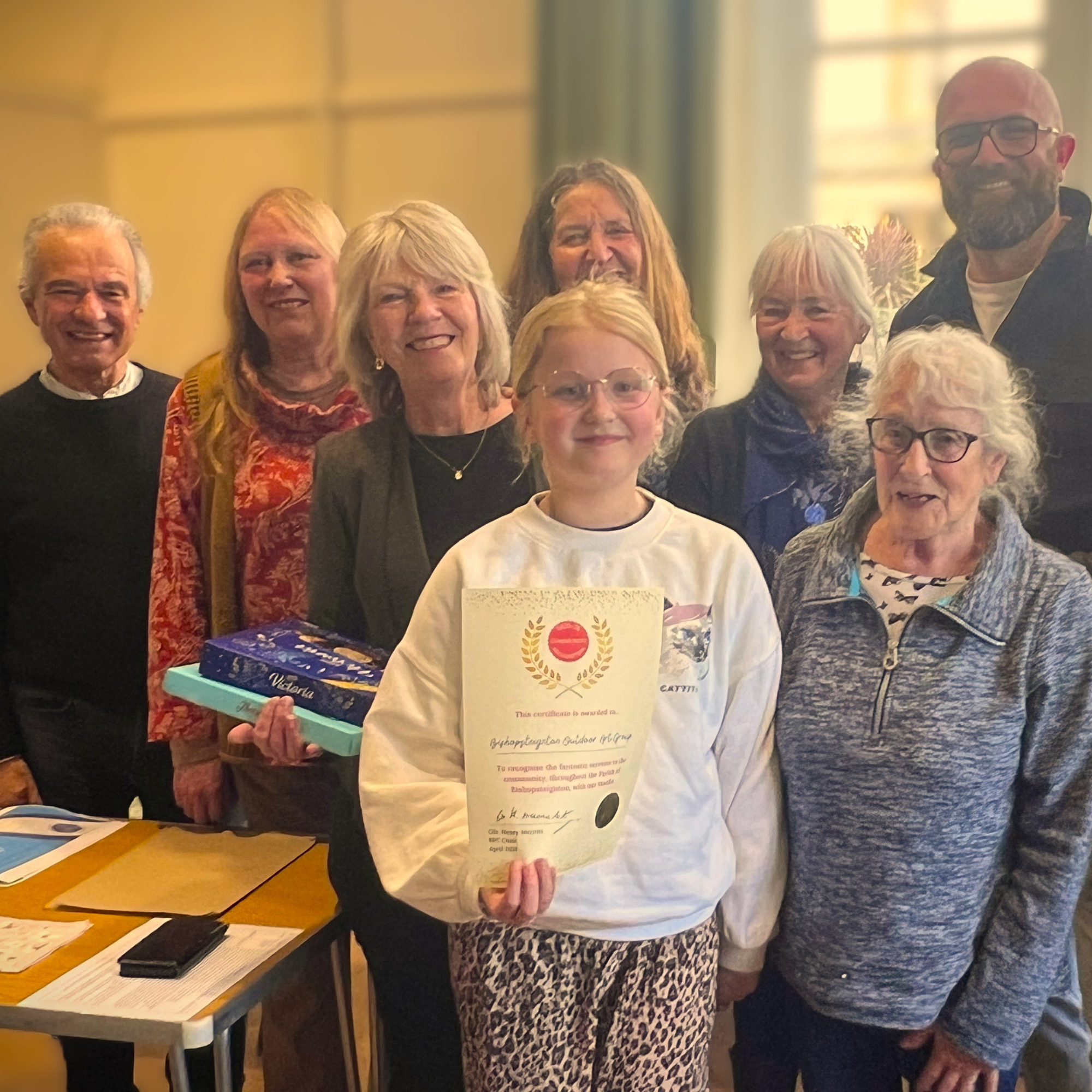 The winning community group was Bishopsteignton Outdoor Art Group (BOAG), gratefully recieved by their leader Caroline Martin-Early. A dedicated team of creative parishioners of all ages. This not-for-profit group have entertained us with various themed and comical trails throught the village for years. A moving dedication was made by Caroline to the groups creator, Gill Greatorex.